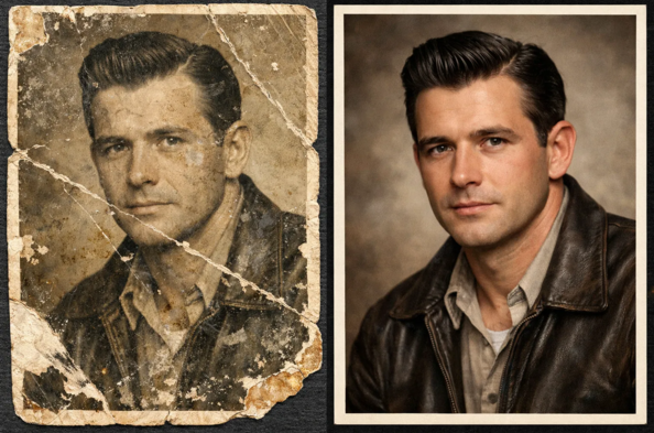 Используя передовые нейронные сети и алгоритмы интеллектуального восстановления, мы устраняем сложнейшие дефекты. Процесс включает бережное удаление глубоких заломов, трещин эмульсии, химических пятен и следов влаги. Мы буквально «сшиваем» разорванные фрагменты изображения, очищая его от визуального шума, пыли и царапин, накопленных за долгие годы хранения в альбомах.